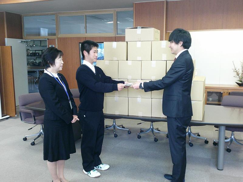 11月11日(金)、本校卒業生の株式会社ゼロインフィニティ 代表取締役 東山 広樹 様より生徒に対してマスク8000枚を寄贈いただきました。