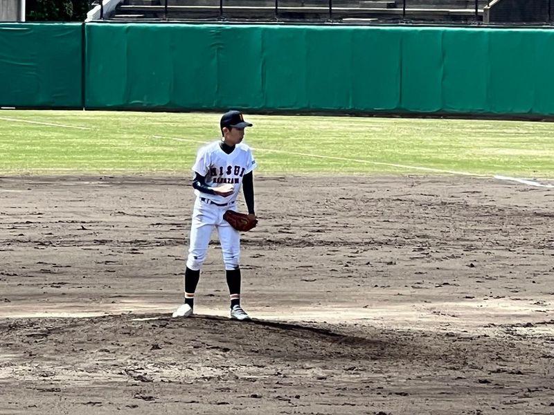 二水の3年生投手は初回から3つの四死球を与え制球に苦しむ立ち上がりとなりピンチを迎えるが、ベンチからの仲間の声と野手のプレーに救われ無失点に抑えました。2回以降はいつも通りの制球を徐々に取り戻し、球威のあるストレートとテンポの良いピッチングで相手打者を次々と抑えていきます。相手のヒットや四死球で数々のピンチを迎えるもダブルプレーや外野手のポジショニングが功を奏し、3安打4三振で7回完封と相手に得点を許しませんでした。