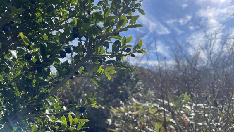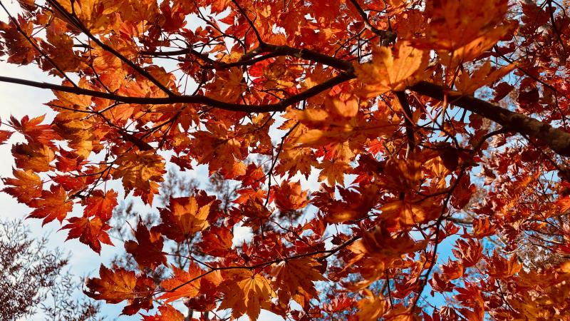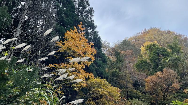 登山道は落ち葉や腐葉土が重なり、柔らかく歩きやすい道でした。今回は顧問1名の他に、本校の外部指導員も同行しての登山ということもあり、道中では様々な植物の解説や、歩行技術の指導を行いながらのんびりと進んでいきました。色鮮やかな紅葉の中、秋を感じながらの登山となりました。
