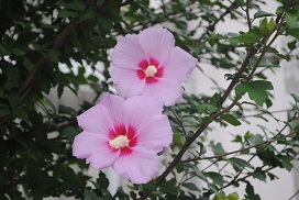 ところで音楽室の窓の下には、暑さの中でもキリリと姿勢よく、空に向かってまっすぐ枝を伸ばす木槿(ムクゲ)の花が咲き始めました。学校祭を大いに楽しむ昼間と、高みを目指し机に向かう静かな夜との切り替えがきちんとできる二水生であってほしい。二水祭まで、あと3日。