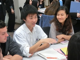 金沢大学の留学生を招待し、国際交流を楽しむ人文科学コース。 「本物の英語」に触れて、たくさんの刺激を受けた。