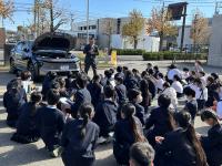 実物の自動車を2台も持ってきていただき、子供たちは見学をしました。最先端の自動車の事情について学ぶ事ができました。
