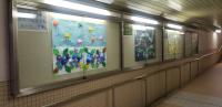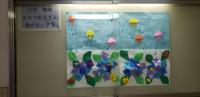 あいさつバトンリレーに取り組んだ、クラスごとの振り返りを児童玄関前に掲示してあります。