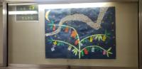 うさぎのちょこちゃんは冬は寒いので今年は階段ホールの最上階、図書館のお隣に引っ越してきました。