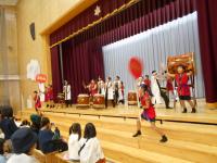 1年生が学校の紹介やが1年生でできるようになったこと、ジャンボリーミッキーのダンス、ありがとうの歌を送りました。