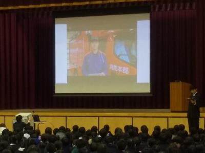 消防士は、危険な遊びや場所に近づかないことと、規則正しい生活について話がありました。