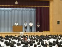 この日は「体育委員会」「メディア委員会」「掲示広報委員会」の発表のあと、6年生が「いじめ0宣言」をしました。