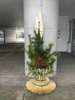 学校の玄関先に門松が置かれ、玄関には注連飾りが付けられました。立派な門松は地域の方に作っていただきました。