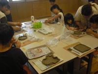 陶芸家野中先生のご指導のもと、親子でお皿をつくりました。
