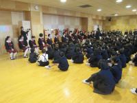 そのあとはレセプションとして、6年生のハンガリー舞曲の合奏、花が咲くの合唱が行われました。花が咲くを中国語で6年生が歌いました。とても綺麗な発音だとほめられました。小嵐さんの太鼓も披露されみんなが見入っていました。