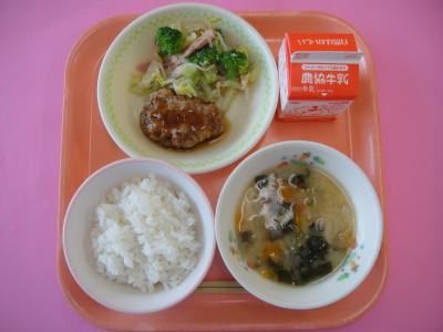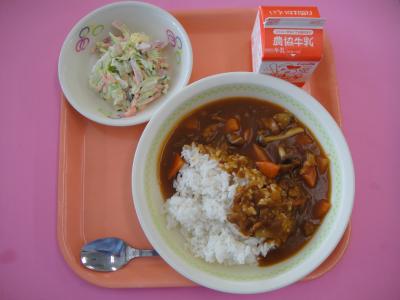 ★今日はみんな大好きハヤシライスでした。1年生は「学校で初めて食べる!おいしい!」と言って食べていました。新玉ねぎを使っているので、野菜の甘さも溶け出していて、とてもおいしく仕上がりました。