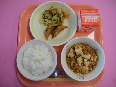 ★今日は暑い日でしたが、熱々のマーボー豆腐を一生懸命にほおばっていました。ピリッと辛いサラダもいいアクセントだったようです。