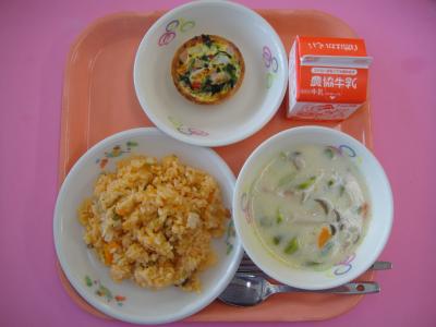 ★キッシュはサクサクの生地にたっぷりの野菜と卵が入っていて、子どもたちに大人気でした。ひとつひとつ丁寧に手作りしてくれている調理員さんに感謝ですね。