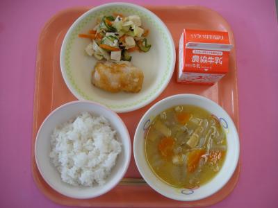 ★さばのしょうが煮をおいしく作るポイントはたくさんのしょうが、ねぎ、お酒を使うことです。配食のあとに食缶に残ったねぎまで、ごはんにのせて食べいる人が何人もいました。きんぴらもしょうが煮もしっかりとした味つけだったので、たくさんごはんをおかわりして、完食のクラスがいっぱいでした。