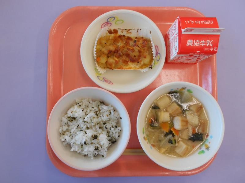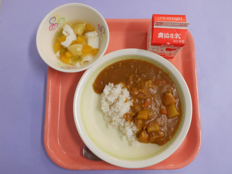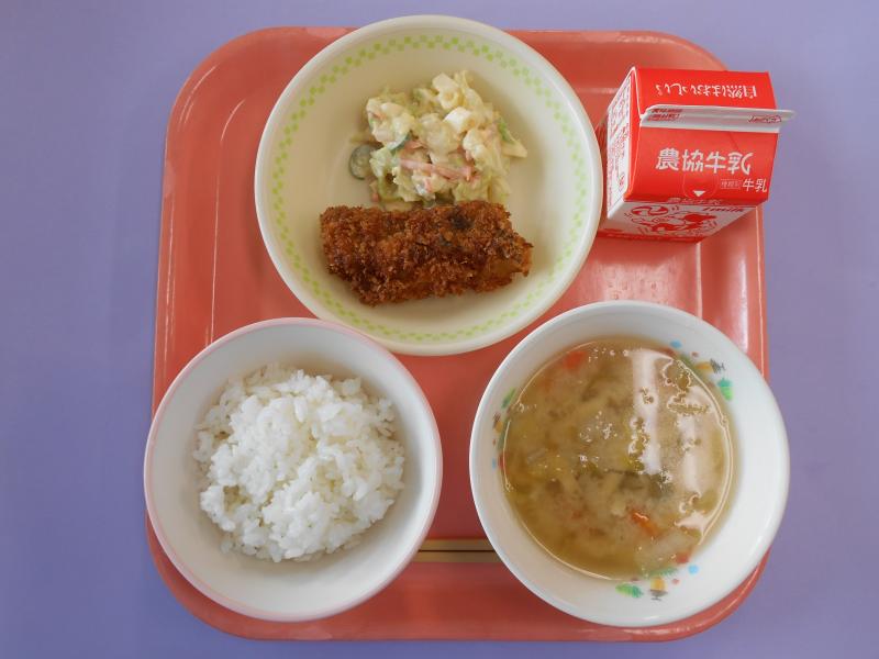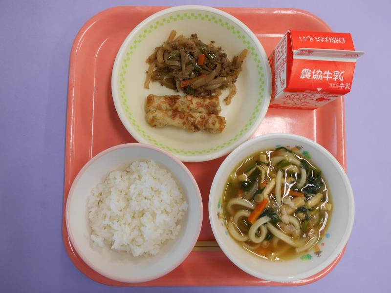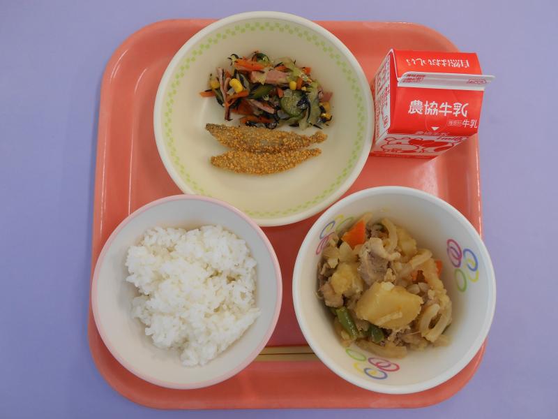 こぎつねごはん(さくら麦ごはん) 牛乳