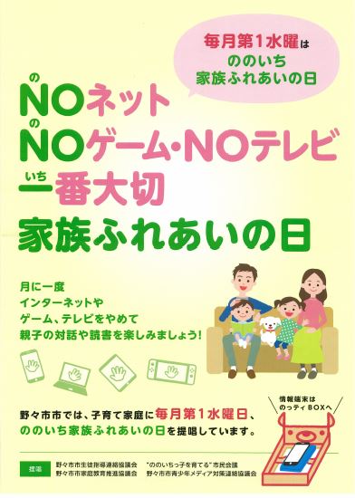 毎月第1水曜日のノーネット・ノーテレビ・ノーゲームデーを推奨しています。