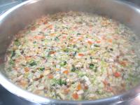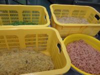五目ずしの具です      ごはんを混ぜ込んでいきます   鶏肉を揚げていきます