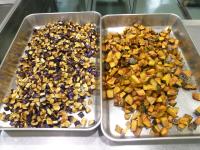 ヤーコン入り焼きメンチは、給食センター手作りです。ヤーコンは野々市市でとれたものを使っています。