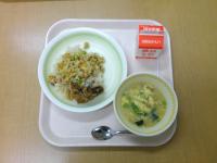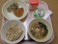 「五目ピラフ、ヤーコン入り焼きメンチ、野々市野菜のミネストローネ、牛乳、ヨーグルト」です。