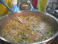 そうめんの具は下煮しました   そうめん茹で        そうめんをクラスごとに配食