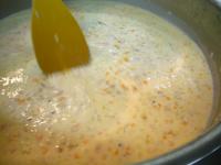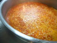 野菜たっぷりのタレです 豆腐を茹でます タレに豆腐を入れて仕上げます 今日の給食