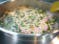 五目ずしの具です ごはんを混ぜ込んでいきます 鶏肉を揚げていきます