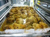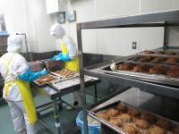 お肉や野菜が偏らないように、均一に混ぜ合わせ、焼きあがったものを切って配食しました。