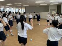 体育館で学年レクリエーションを行いました。新しいクラスで協力して取り組みました。