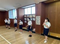 10月18日(水)の朝、1年生は、合同朝礼と合唱の中間発表を行いました。