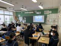 11月7日に全校集会を校内放送で行いました。表彰伝達や合唱コンクールの表彰、国沢先生から生活についてのお話がありました。生徒会からは、自問の歴史について、生徒会の鹿島さんがプレゼンを使って説明しました。