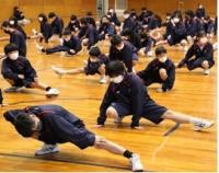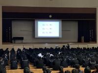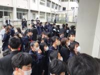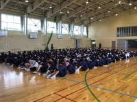 中間テスト後に全校集会を行いました。全校生徒が体育館で、防犯教室や表彰伝達を行い最後に、国沢先生から
