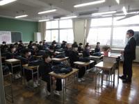 12月1日に不審者対応訓練を行いました。不審者が侵入したときに備えての教室バリケードの作成や白山警察署の方の講話を聞きました。