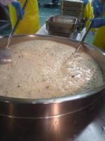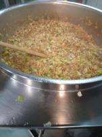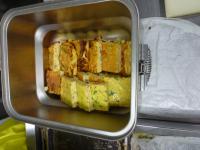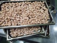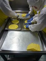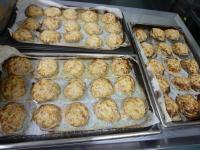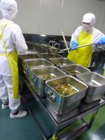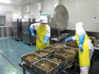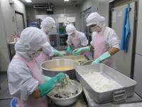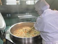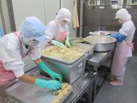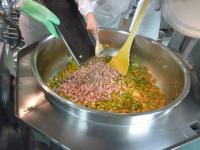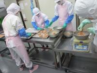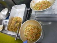 お肉や野菜が偏らないように、均一に混ぜ合わせ、焼きあがったものを切って配食しました。