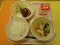 今日の給食は、「牛乳・ごはん・手作りハンバーグ・ブロッコリーのタルタルサラダ・大根と揚げのみそ汁」です。