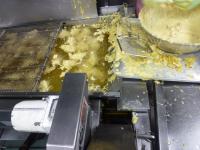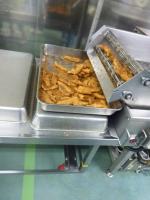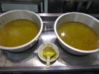 カラッと揚げていきます。                おいしそうなきつね色に仕上がりました。