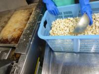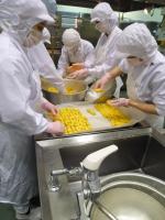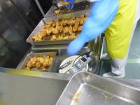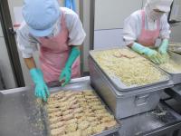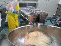 天ぷら衣をつけて揚げます    1人2個ずつに数を数えます    今日の給食です
