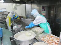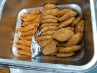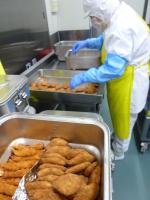 白身魚フライを揚げます     クラスごとに数えます   エビフライと白身魚フライ
