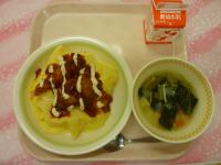 今日の献立は「ハントンライス・ペイザンヌスープ・牛乳」です。