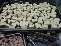堅豆腐も切って加熱します   加熱した堅豆腐やスパムを入れます
