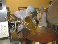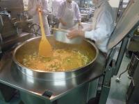 給食の鍋が焦げ付かないようにたまねぎとトマトを炒めたあとにカレールウをいれました。