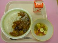 いつもの給食のカレーとは一味違うスパイスの効いたカレーライスでした。