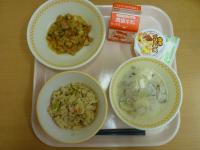 香辛料を使ったスパイシーな炊き込みごはんのことです。中東やアラブの国では大人気の国民食です。給食では、鶏肉と野菜を炒め、ごはんと混ぜました。カレーの香りが食欲をそそります。
