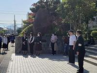 本校生徒も保護者と共に朝のあいさつ運動に取り組んでいます。