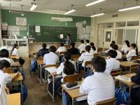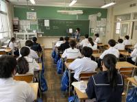 中間テスト後に全校集会を行いました。全校生徒が体育館で、防犯教室や表彰伝達を行い最後に、国沢先生から