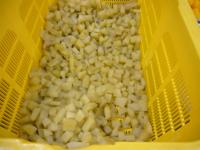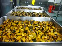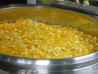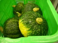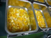 中学校給食センターに入荷した地元野菜は「かぼちゃ」と「たまねぎ」でした。フルーツカクテルには白山市の翠星高校の生徒さんが