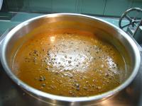 ツヤツヤのかぼちゃでした。 大きめのたまねぎでした。 かぼちゃとなすを油で揚げます。 野中の半分です。もう1釜分あります。
