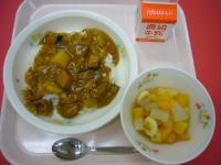 ヤーコンコンポートです。 フルーツやゼリーと混ぜました。 ヤーコンの色が目立ちませんでした。 今日の給食です。