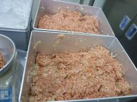 肉ダネを混ぜました 肉ダネを成型し、パン粉 パン粉をかけています
