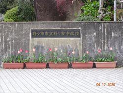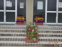 チューリップの花が咲きました。みんなが登校できる日を待っています。