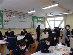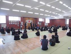 2年生は教室で、1年生は特活室、武道館と密にならないようにして